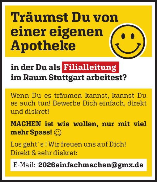 Träumst Du von einer eigenen Apotheke, in der Du als Filialleitung im Raum Stuttgart arbeitest?