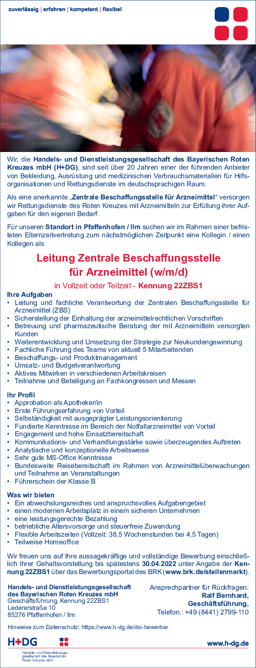 05.04.2022 | H + DG Handels- und Dienstleistunges. des Bayer. Roten Kreuzes mbH | Pfaffenhofen/Ilm